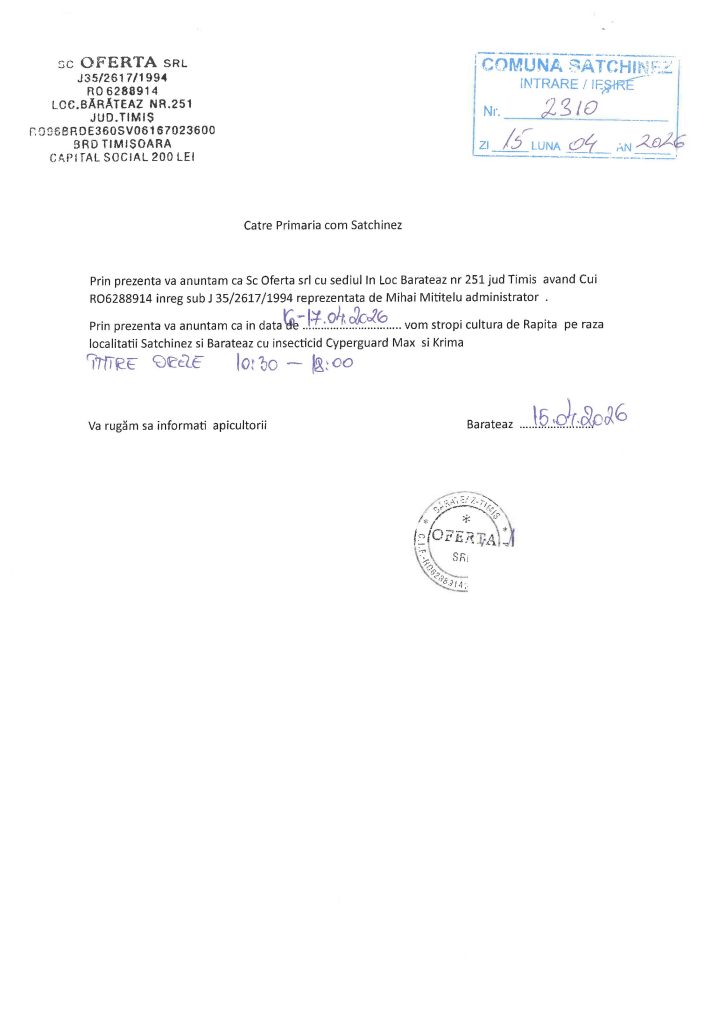 Primăria întreţine acest domeniu pentru a facilita accesul public la informaţii privind activităţile sale. Administratorul depune eforturi pentru ca aceste informaţii să fie corecte şi oferite la timp. La semnalarea eventualelor erori, Administratorul va încerca în cel mai scurt timp, corectarea acestora.